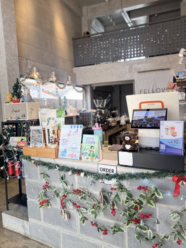 ปิดท้ายกันที่คาเฟ่สไตล์ลอฟต์ ที่ตกแต่งธีมคริสต์มาสออกมาได้อย่างอบอุ่นน่ารัก กับร้าน Fellow Cafe ร้านมี 2 ชั้น มีหลายมุมให้เลือกนั่งชิล พร้อมประดับไฟสวยงามได้กลิ่นอายของคริสต์มาสอย่างลงตัว Fellow Café มีเมนูเครื่องดื่มหลากหลาย และเบเกอร์รี่แบบโฮมเมด และสำหรับสาย DIY ที่ร้านมี Workshop ระบายสีแผ่นกระดาน แต่งหน้าเค้กอีกด้วย เหมาะมากกับใครที่ต้องการคาเฟ่สวยๆ นั่งเพลินๆ จิบกาแฟ ชิลไปกับการสร้างสรรค์งานศิลปะบนหน้าเค้ก แวะมาเติมความสุข ผ่อนคลายกับบรรยากาศสวยๆของคริสต์มาสกันได้ที่ Fellow Café กันเลย