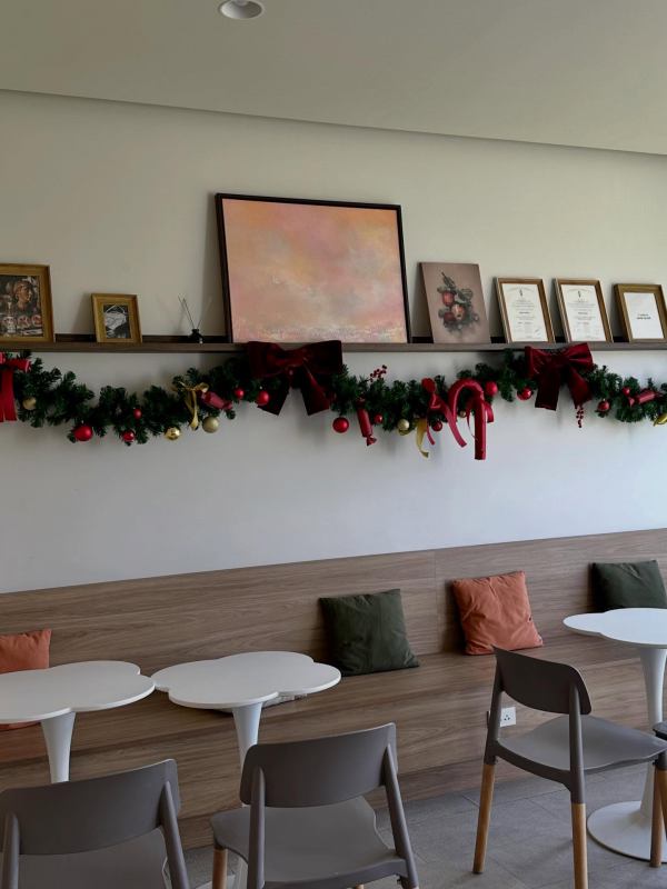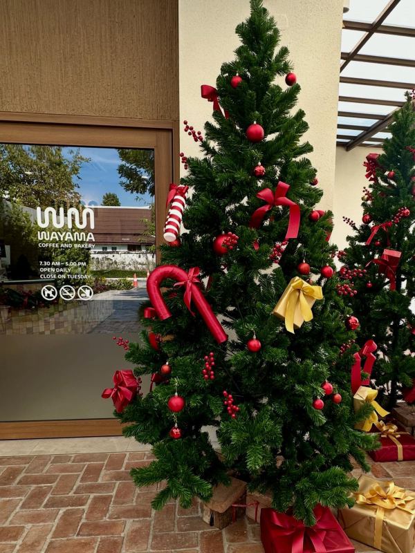 มาต่อกันที่ร้าน Wayama Coffee and Bakery ร้านสวย มีสไตล์ ในบรรยากาศสุดชิล ฟีลกู้ด ร้านตกแต่งสไตล์มินิมอลที่ดูอบอุ่นผ่อนคลาย เมื่อเพิ่มกลิ่นอายของคริสต์มาสเข้าไปทำให้ยิ่งดูอบอุ่นและมีสีสันเพิ่มมากขึ้น ร้านมีที่นั่งทั้งโซน indoor และ outdoor ใครชอบนั่งรับลมชิลๆ เลือก outdoor ได้เลย และยังสามารถพาน้องหมาน้องแมวมาได้ด้วย ในเฉพาะโซนด้านนอกเท่านั้น สำหรับเครื่องดื่ม ร้านมีทั้งกาแฟแสนอร่อยและเครื่องดื่มมากมาย และยังมีเค้กน่าทานอีกด้วย มาฉะเชิงเทราทั้งที แวะพักผ่อนทานขนมอร่อยๆกับร้านบรรยากาศดี ที่ Wayama Coffee and Bakery กันได้เลย